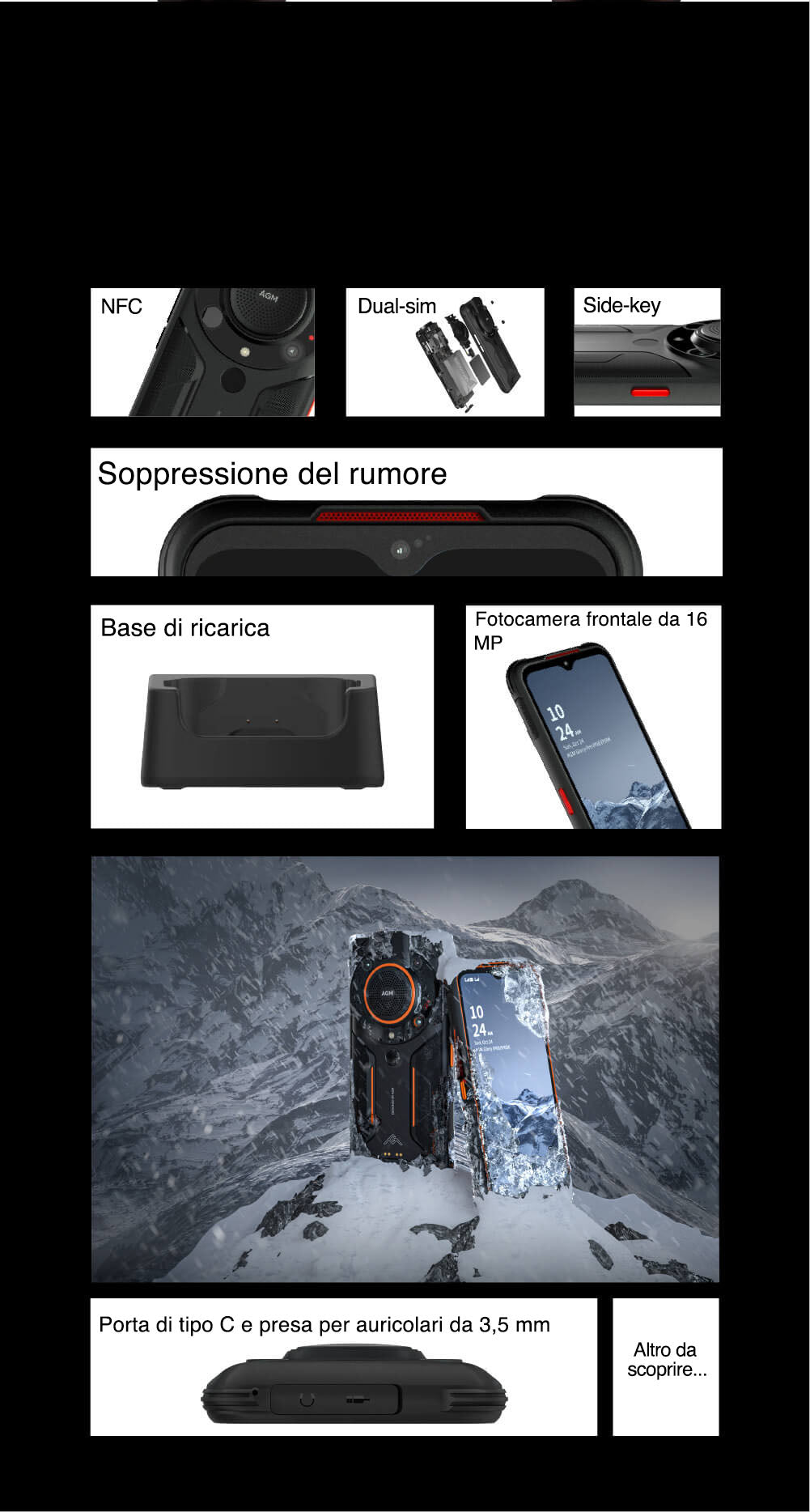 Tutti i telefoni AGM sono conformi allo standard IP68, che garantisce la resistenza alla polvere e ai liquidi per periodi temporanei o prolungati a seconda del terminale e in condizioni di uso normale, come raccomandato dal produttore. Tutti i nostri modelli sono stati sottoposti a severi test di impermeabilità e resistenza per essere conformi a questi standard e allo standard MIL-STD-810H. Inoltre abbiamo sviluppato il nostro standard chiamato OEPT (Outdoor Environments Performance Test) per proteggere ulteriormente i dispositivi.