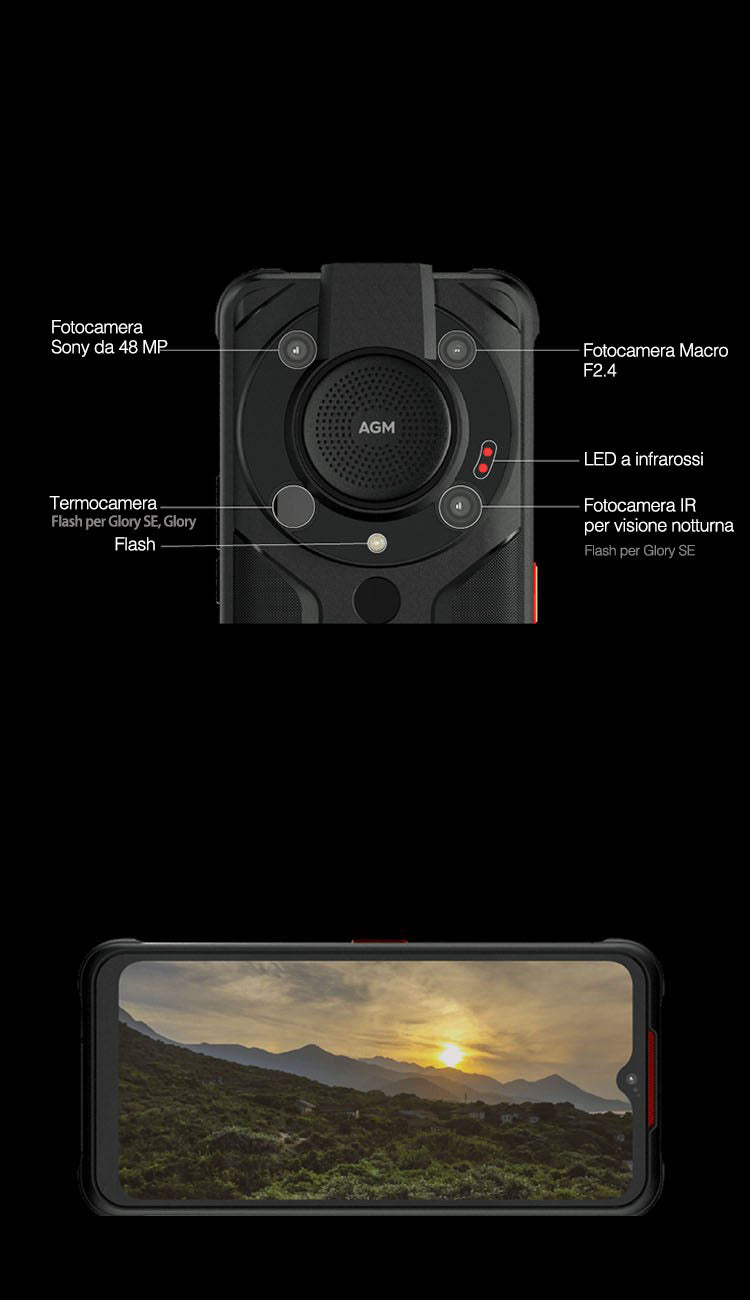 Con tutto questo, AGM Glory è IP68, IP69K, MIL-STD-810H e a un solo passo dall'antiproiettile.