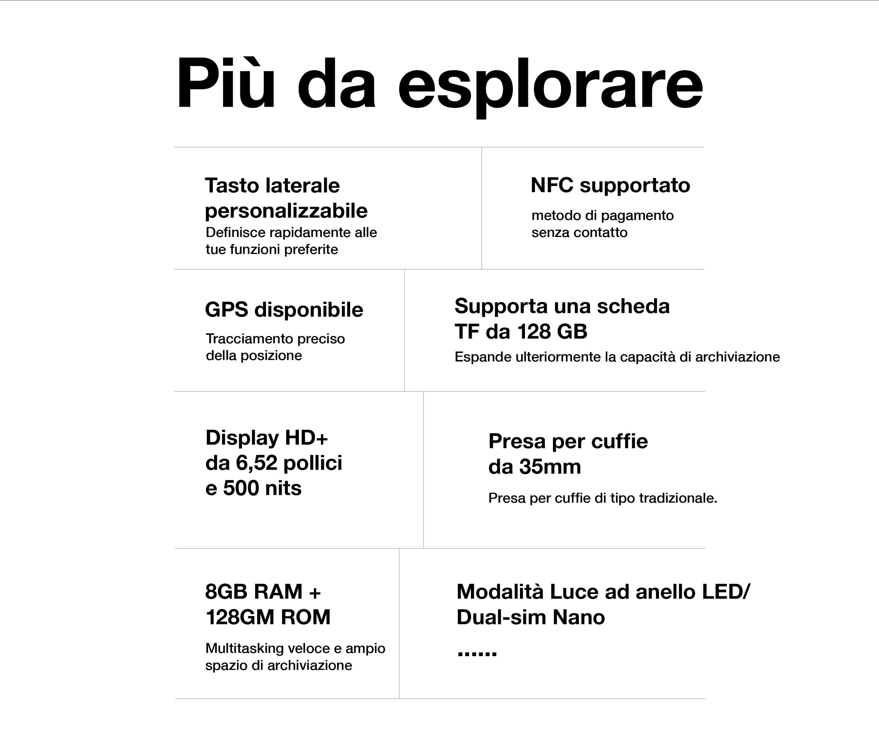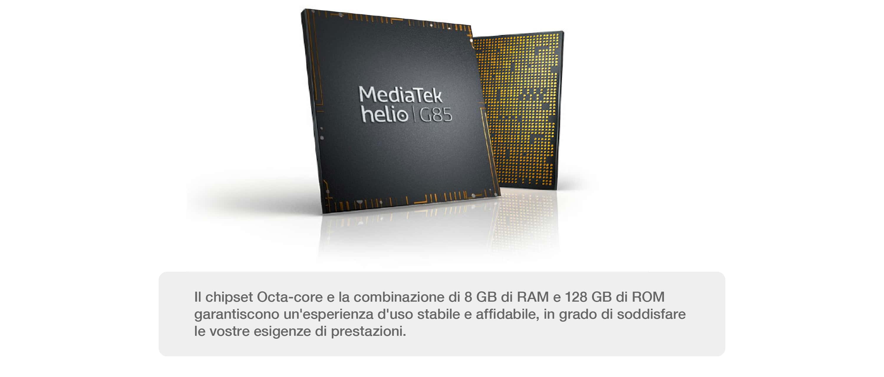 Chipset: 2*Cortex-xA75 fino a 2GHz + 6*Cortex-xA55 fino a 1,8GHz MT6769V/CZ
