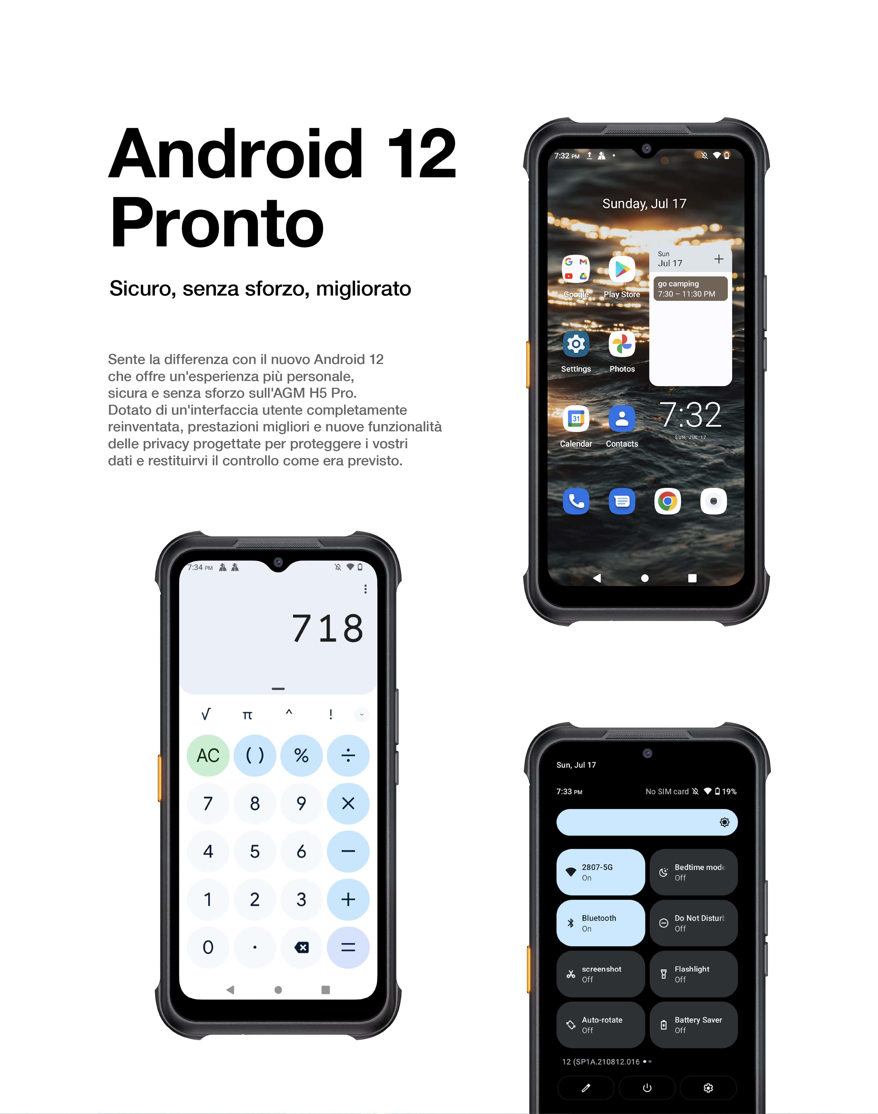 AGM H5 Pro | Android 12 | 3.5W 109dB Altoparlante | Mediatek Helio G85